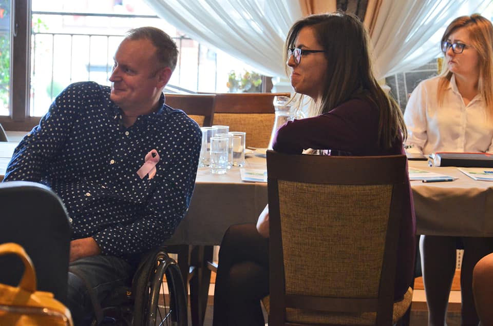 W pierwszej części spotkania p. Anna Drabarz, prezes Podlaskiego Sejmiku OzN, omówiła kwestie związane z art. 29 Konwencji Praw Osób Niepełnosprawnych, która gwarantuje OzN pełny udział w życiu publicznym i politycznym. Z kolei p. Wojciech Grabowski z Fundacji Impuls podzielił się doświadczeniami odnośnie działających w Białymstoku usług asystenckich, mapy dostępności miasta, serwisu informacyjnego dla OzN. Był to punkt wyjścia do części warsztatowej, w którą zaangażowani byli wszyscy uczestnicy spotkania.
